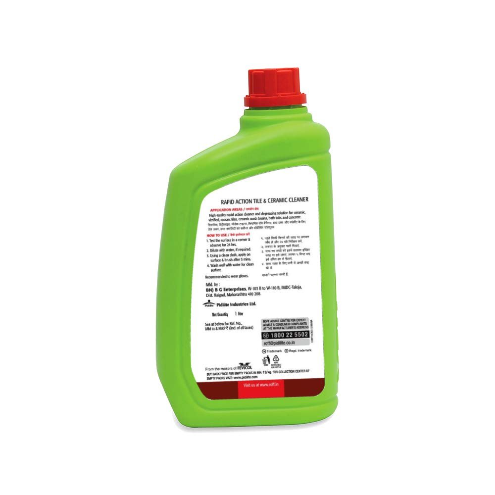 - Safe on Tiles - A tile cleaner cum tile shiner, Roff Cera Clean Rapid Tile and Ceramic floor cleaner helps preserve the sheen of tiles, floors and other such surfaces. Unlike acid and other harsh cleaning agents, Roff Cera Clean is safe on tile, which essentially means that your expensive surfaces will remain untainted.